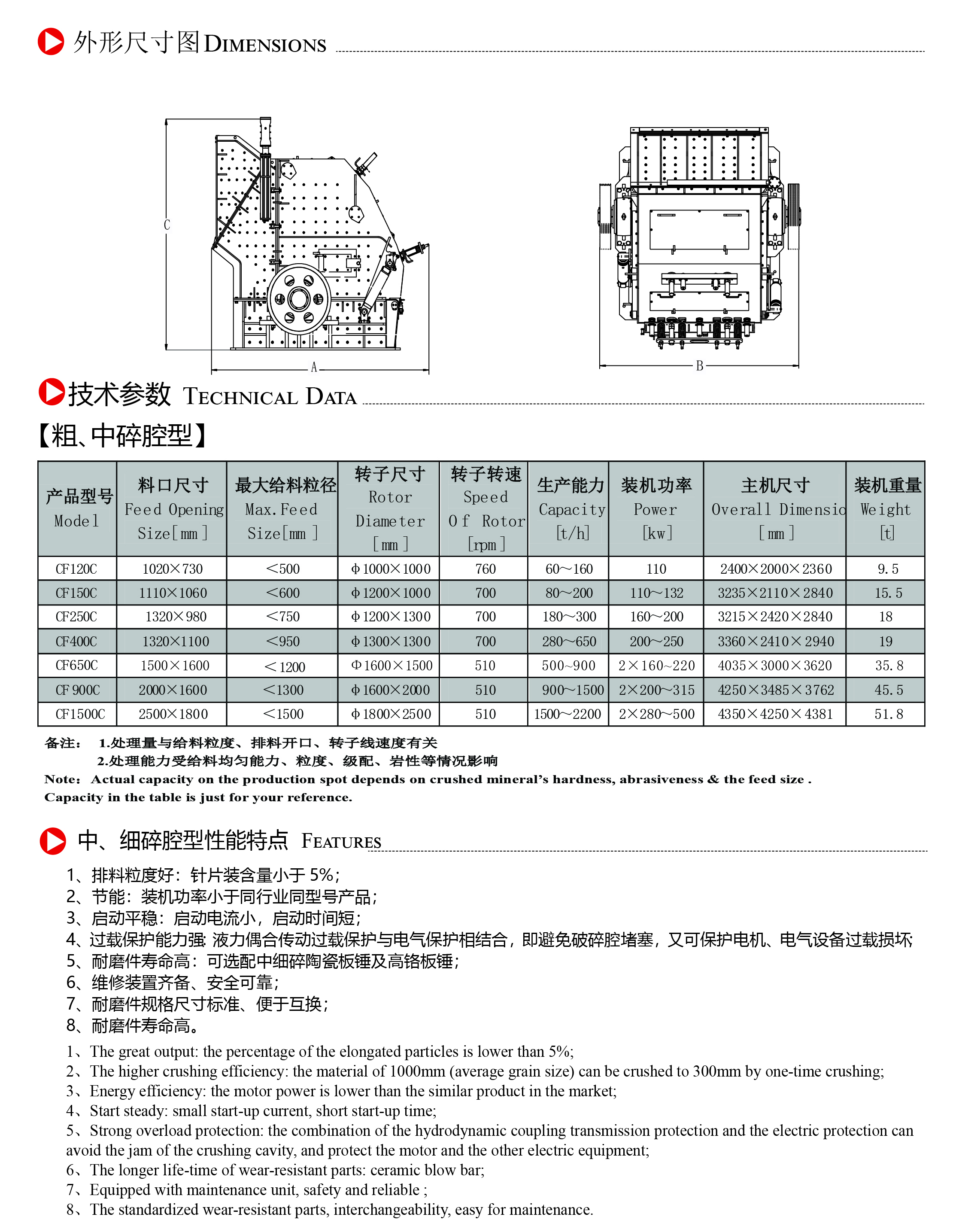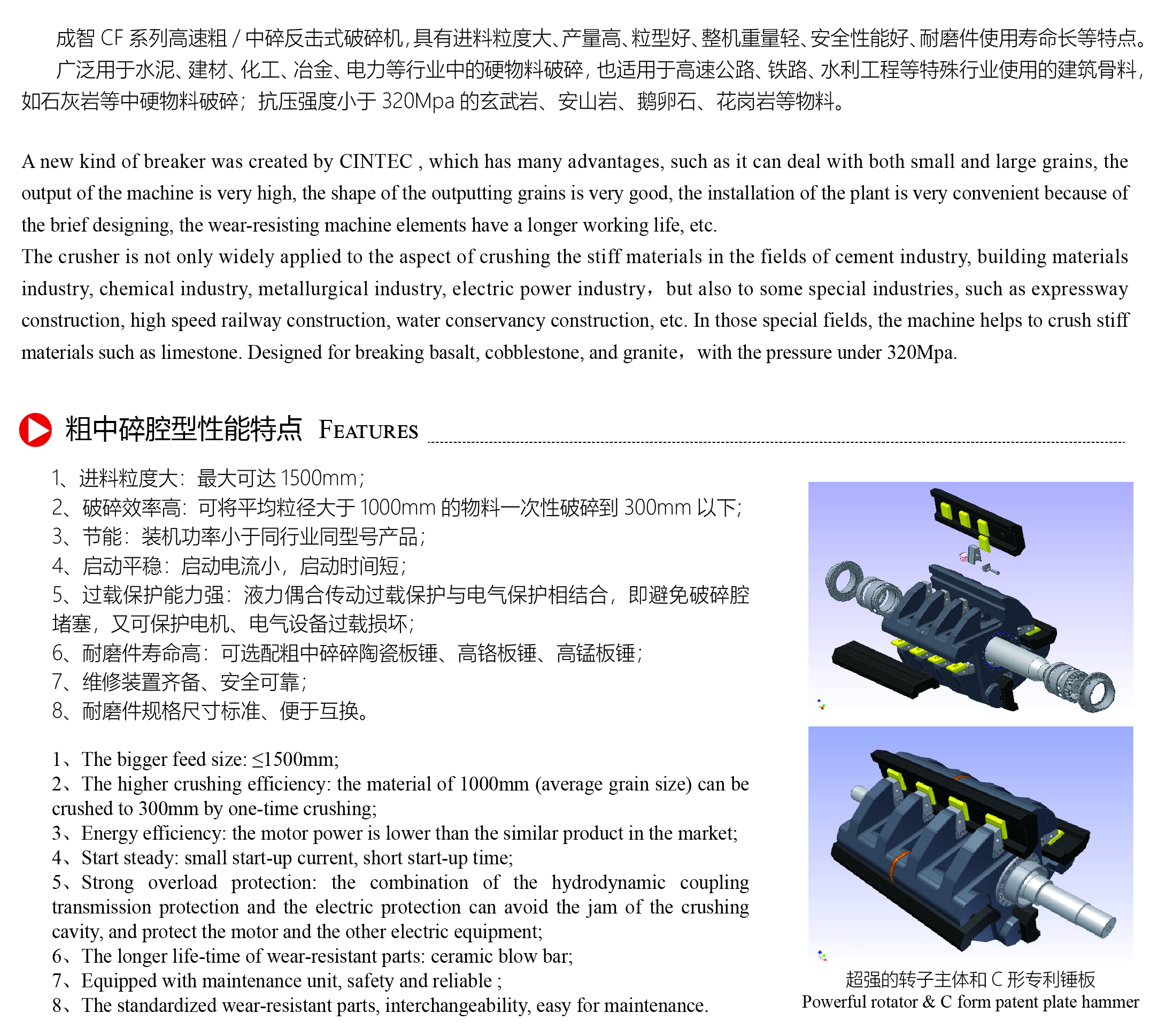 ? ? 成智CF系列高速粗/中碎反擊式破碎機,具有進料粒度大、產量高、粒型好、整機重量輕、安全性能好、耐磨件使用壽命長等特點。 ? ? 廣泛用于水泥、建材、化工、冶金、電力等行業(yè)中的硬物料破碎,也適用于高速公路、鐵路、水利工程等特殊行業(yè)使用的建筑骨料,如石灰?guī)r等中硬物料破碎;抗壓強度小于320Mpa的玄武巖、安山巖、鵝卵石、花崗巖等物料。